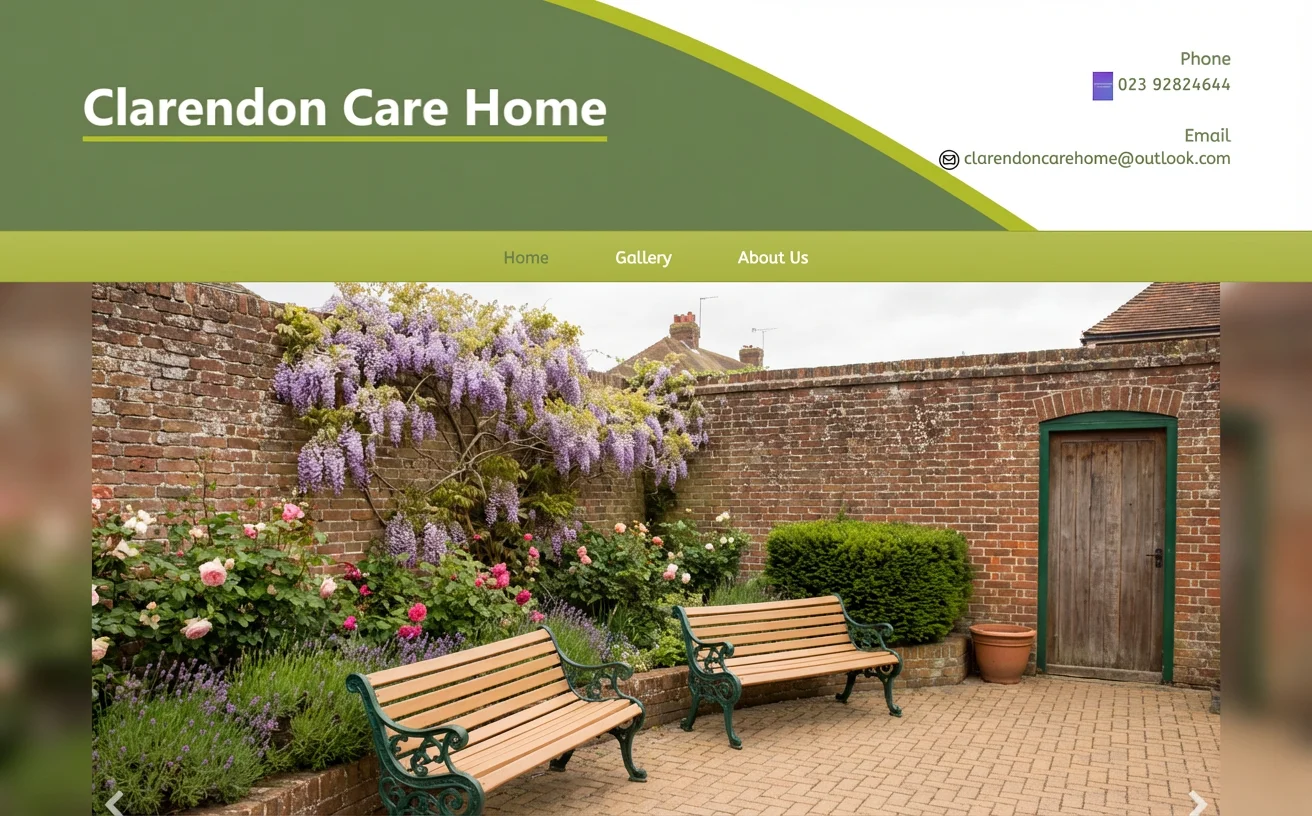 Clarendon Care Home is a small residential care home in Portsmouth — a comfortable, homely environment for up to twenty older adults. Small by design: staff know each resident's preferences, families always speak to someone who knows their relative, and the day's rhythm flexes around the people who live here.